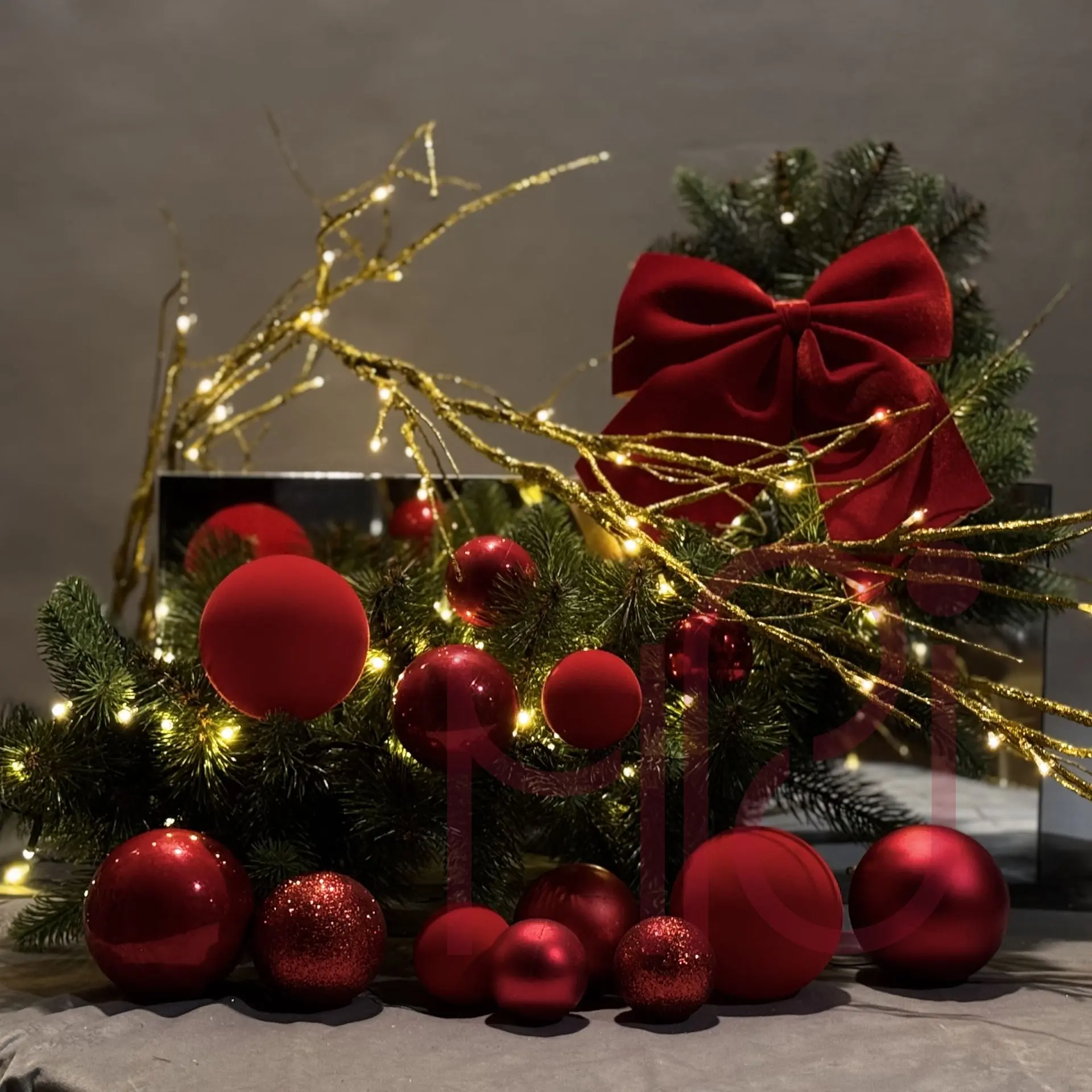 - Kalėdinę puošybą su dirbtinėmis eglėmis, vainikais, girliandomis ir šventiniais instaliacijų elementais.