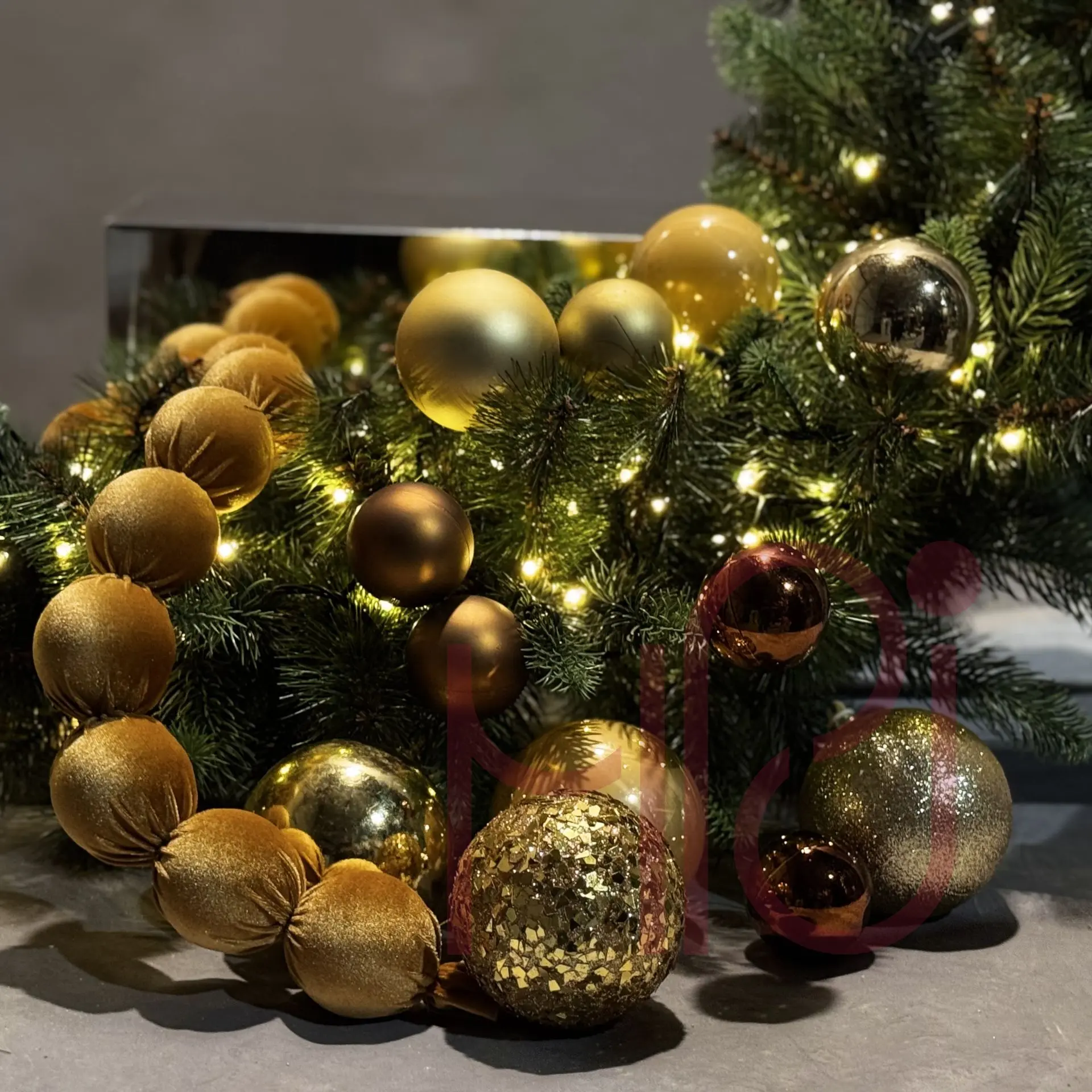 - Kalėdinę puošybą su dirbtinėmis eglėmis, vainikais, girliandomis ir šventiniais instaliacijų elementais.